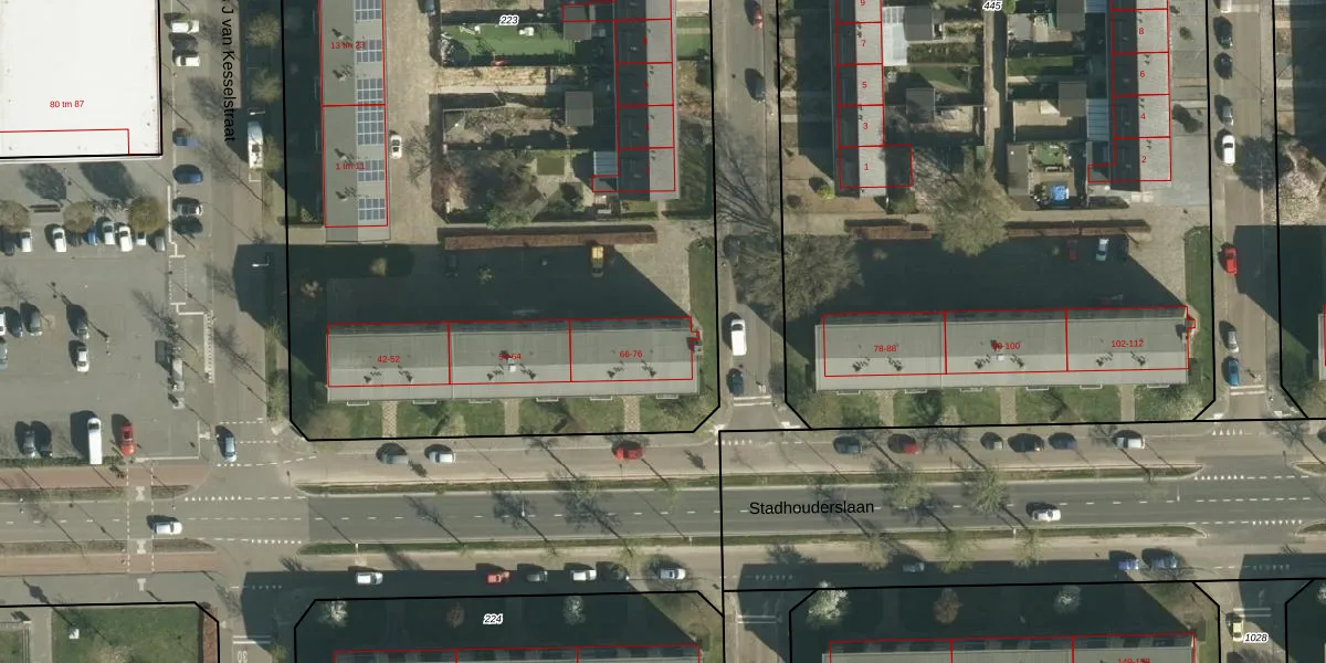 Stadhouderslaan 42-GA51 is gelegen op kadastraal perceel STE00G223. Deze kadastrale aanduiding is uniek en wordt gebruikt door het Kadaster om eigendomsrechten en andere zakelijke rechten vast te leggen. Het perceel maakt onderdeel uit van de kadastrale gemeente Stein.