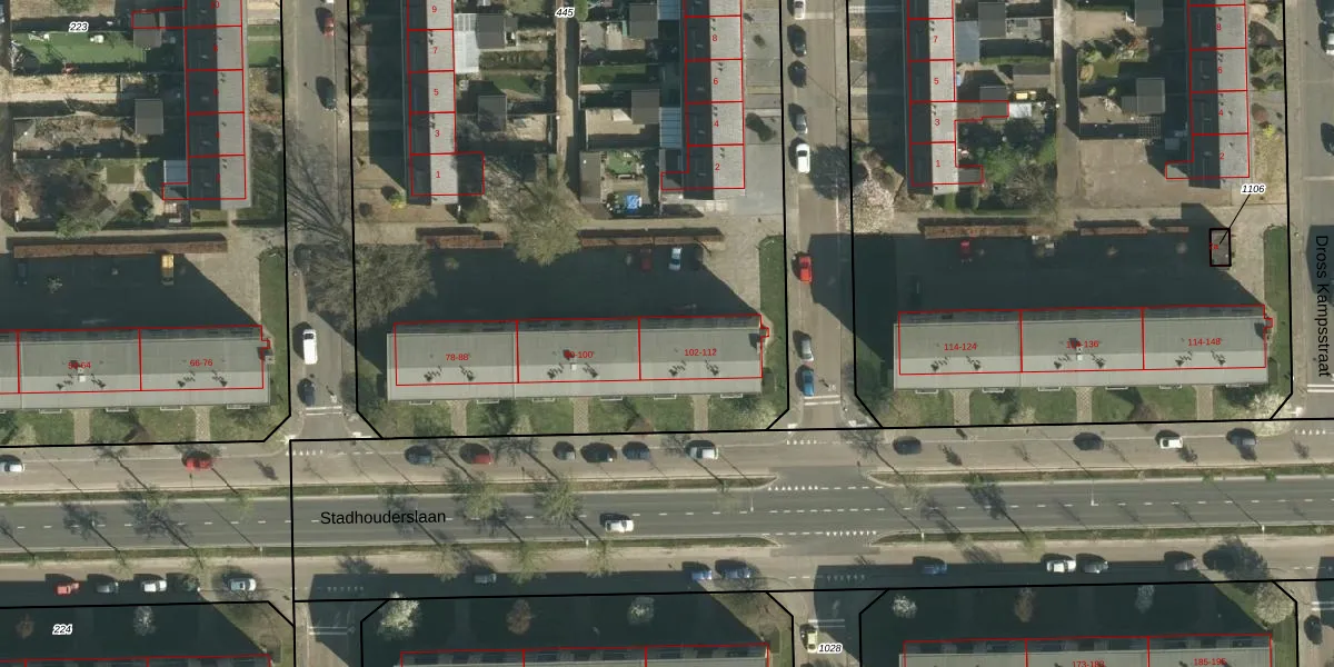 Stadhouderslaan 78-GA46 is gelegen op kadastraal perceel STE00G445. Deze kadastrale aanduiding is uniek en wordt gebruikt door het Kadaster om eigendomsrechten en andere zakelijke rechten vast te leggen. Het perceel maakt onderdeel uit van de kadastrale gemeente Stein.