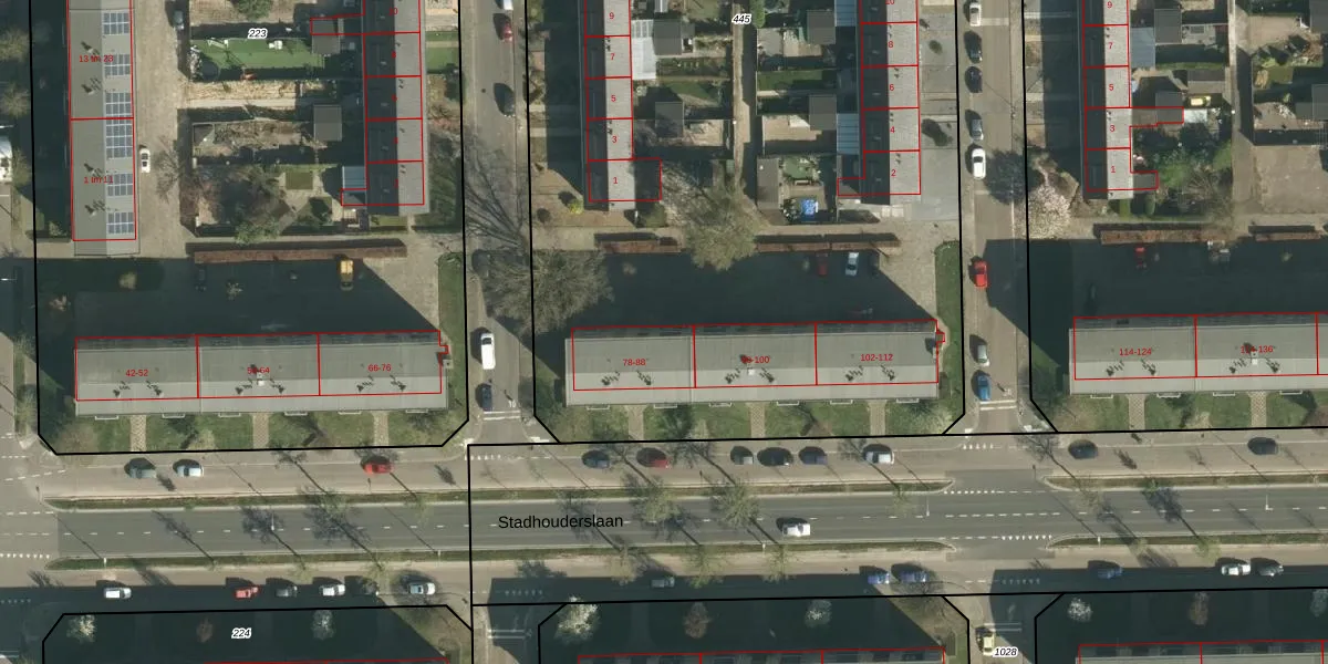 Stadhouderslaan 88 is gelegen op kadastraal perceel STE00G445. Deze kadastrale aanduiding is uniek en wordt gebruikt door het Kadaster om eigendomsrechten en andere zakelijke rechten vast te leggen. Het perceel maakt onderdeel uit van de kadastrale gemeente Stein.