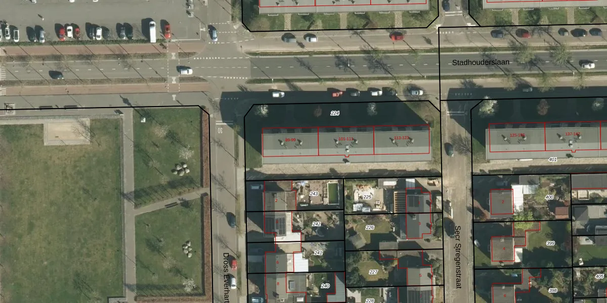 Stadhouderslaan 89-GA10 is gelegen op kadastraal perceel STE00G224. Deze kadastrale aanduiding is uniek en wordt gebruikt door het Kadaster om eigendomsrechten en andere zakelijke rechten vast te leggen. Het perceel maakt onderdeel uit van de kadastrale gemeente Stein.
