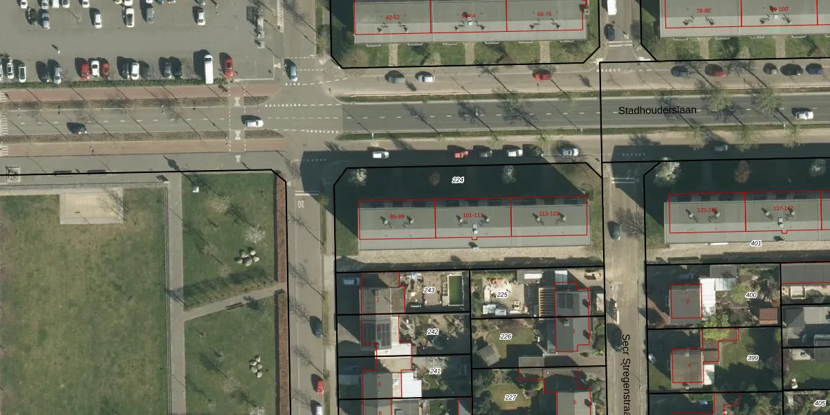 Stadhouderslaan 91 is gelegen op kadastraal perceel STE00G224. Deze kadastrale aanduiding is uniek en wordt gebruikt door het Kadaster om eigendomsrechten en andere zakelijke rechten vast te leggen. Het perceel maakt onderdeel uit van de kadastrale gemeente Stein.