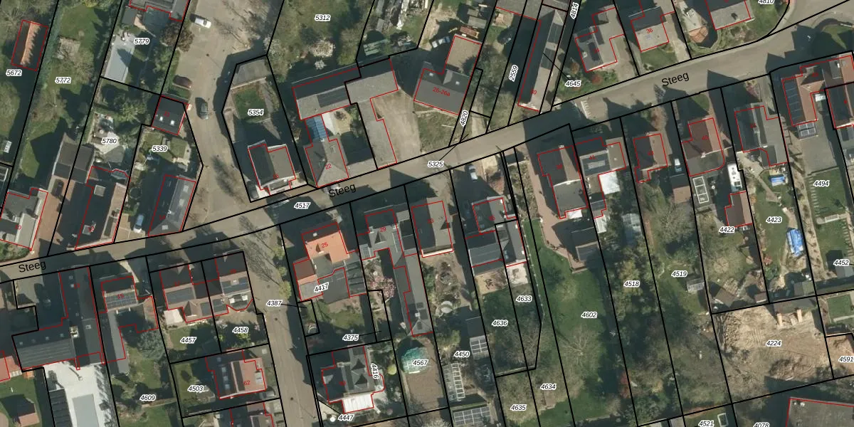 Steeg 33 is gelegen op kadastraal perceel STE00C4450. Deze kadastrale aanduiding is uniek en wordt gebruikt door het Kadaster om eigendomsrechten en andere zakelijke rechten vast te leggen. Het perceel maakt onderdeel uit van de kadastrale gemeente Stein.