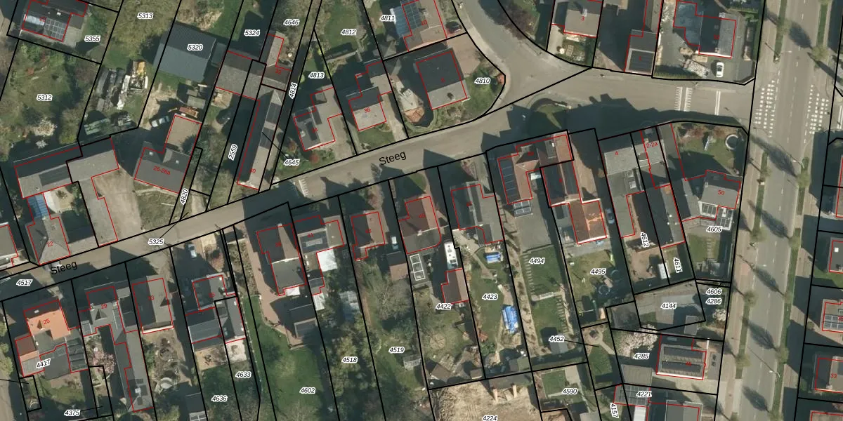 Steeg 45 is gelegen op kadastraal perceel STE00C4422. Deze kadastrale aanduiding is uniek en wordt gebruikt door het Kadaster om eigendomsrechten en andere zakelijke rechten vast te leggen. Het perceel maakt onderdeel uit van de kadastrale gemeente Stein.