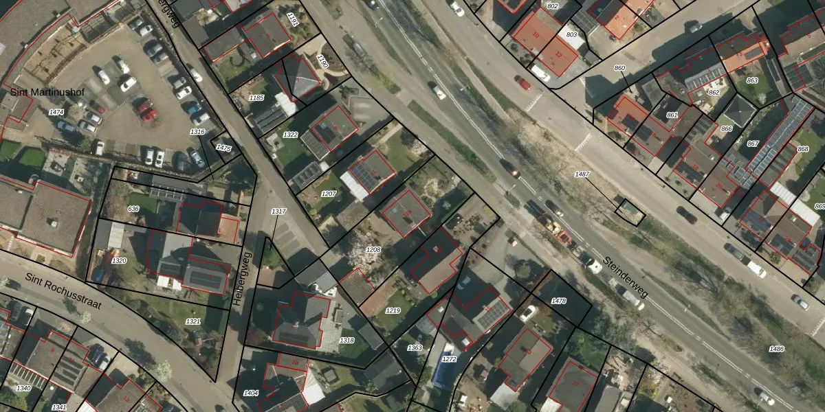 Gebruik de zoekbalk of klik op een perceel voor informatie over de adressen binnen dit perceel.