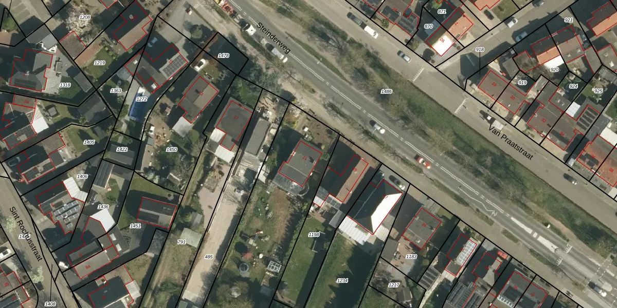 Steinderweg 21 is gelegen op kadastraal perceel STE00F1154. Deze kadastrale aanduiding is uniek en wordt gebruikt door het Kadaster om eigendomsrechten en andere zakelijke rechten vast te leggen. Het perceel maakt onderdeel uit van de kadastrale gemeente Stein.