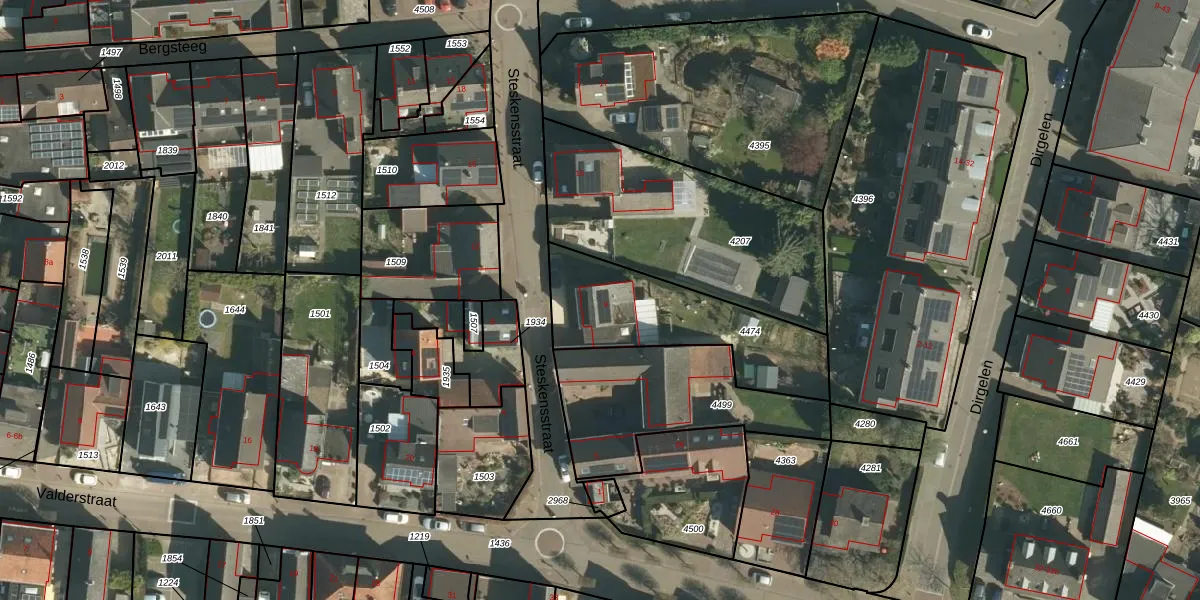 Gebruik de zoekbalk of klik op een perceel voor informatie over de adressen binnen dit perceel.