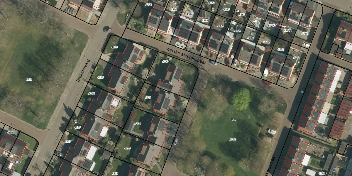 Gebruik de zoekbalk of klik op een perceel voor informatie over de adressen binnen dit perceel.