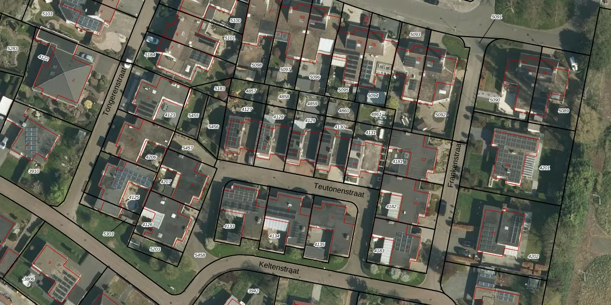Het perceel waarop Teutonenstraat 10 staat heeft een oppervlakte van 207 m². Dit is een middelgroot perceel. De perceeloppervlakte wordt geregistreerd door het Kadaster. Gedetailleerde informatie over de maten van dit perceel kunt u vinden in het rapport Kadastrale kaart met maatvoering van Teutonenstraat 10.