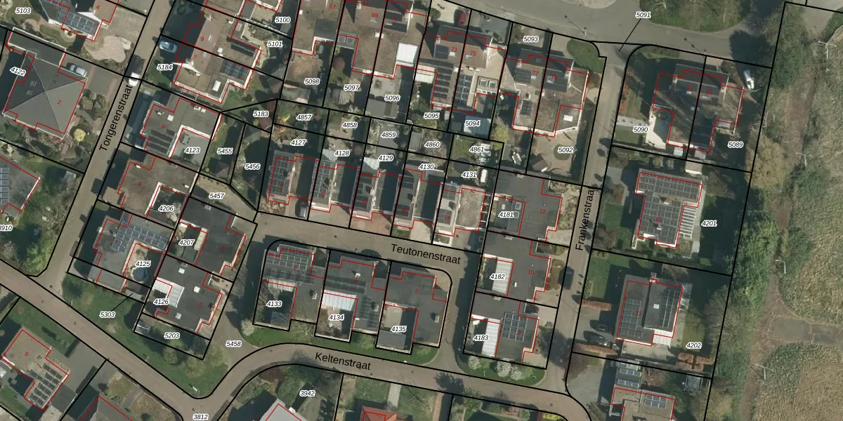 Teutonenstraat 12 is gelegen op kadastraal perceel STE00B4130. Deze kadastrale aanduiding is uniek en wordt gebruikt door het Kadaster om eigendomsrechten en andere zakelijke rechten vast te leggen. Het perceel maakt onderdeel uit van de kadastrale gemeente Stein.