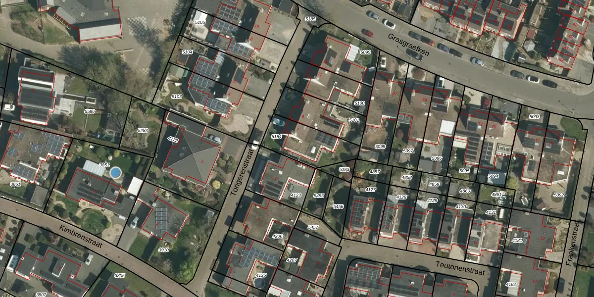 Tongerenstraat 7 is gelegen op kadastraal perceel STE00B5184. Deze kadastrale aanduiding is uniek en wordt gebruikt door het Kadaster om eigendomsrechten en andere zakelijke rechten vast te leggen. Het perceel maakt onderdeel uit van de kadastrale gemeente Stein.