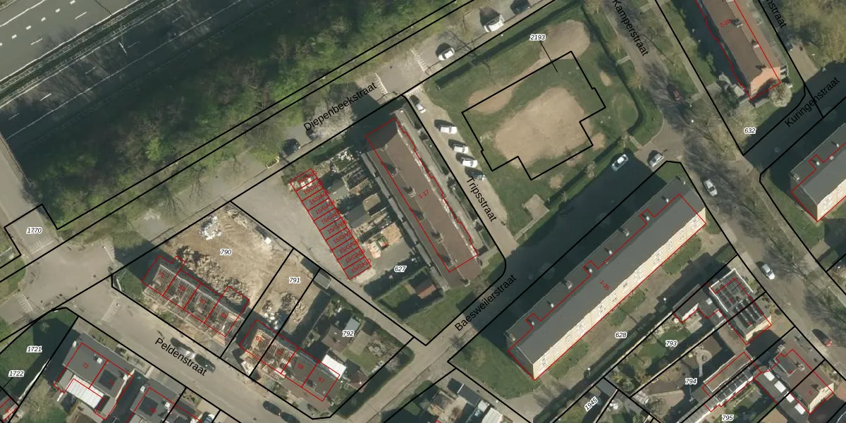 Het perceel waarop Tripsstraat 11 staat heeft een oppervlakte van 1930 m². Dit is een zeer groot perceel. De perceeloppervlakte wordt geregistreerd door het Kadaster. Gedetailleerde informatie over de maten van dit perceel kunt u vinden in het rapport Kadastrale kaart met maatvoering van Tripsstraat 11.