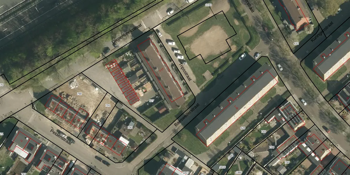 Tripsstraat 13 is gelegen op kadastraal perceel STE00G627. Deze kadastrale aanduiding is uniek en wordt gebruikt door het Kadaster om eigendomsrechten en andere zakelijke rechten vast te leggen. Het perceel maakt onderdeel uit van de kadastrale gemeente Stein.