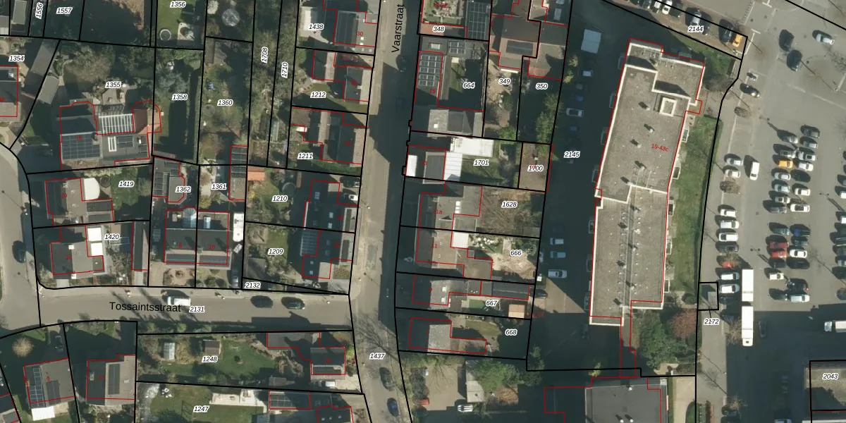 Gebruik de zoekbalk of klik op een perceel voor informatie over de adressen binnen dit perceel.