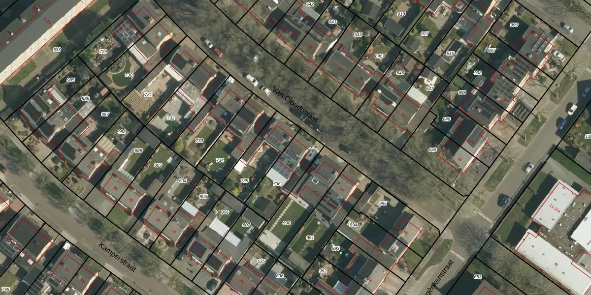 Het perceel waarop Van Cloudtstraat 15 staat heeft een oppervlakte van 325 m². Dit is een groot perceel. De perceeloppervlakte wordt geregistreerd door het Kadaster. Gedetailleerde informatie over de maten van dit perceel kunt u vinden in het rapport Kadastrale kaart met maatvoering van Van Cloudtstraat 15.