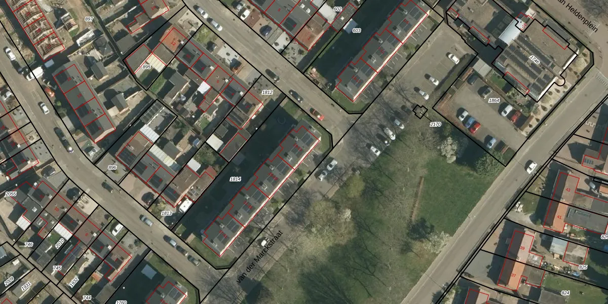 Het perceel waarop van der Marckstraat 23 staat heeft een oppervlakte van 1311 m². Dit is een zeer groot perceel. De perceeloppervlakte wordt geregistreerd door het Kadaster. Gedetailleerde informatie over de maten van dit perceel kunt u vinden in het rapport Kadastrale kaart met maatvoering van van der Marckstraat 23.