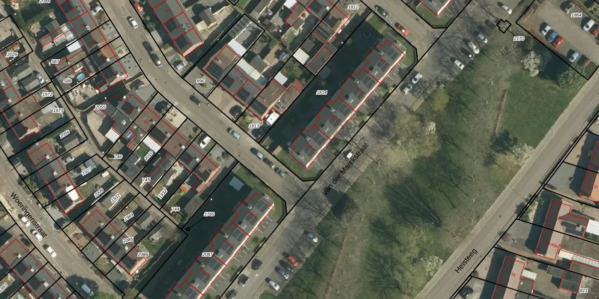 Het perceel waarop van der Marckstraat 41 staat heeft een oppervlakte van 1311 m². Dit is een zeer groot perceel. De perceeloppervlakte wordt geregistreerd door het Kadaster. Gedetailleerde informatie over de maten van dit perceel kunt u vinden in het rapport Kadastrale kaart met maatvoering van van der Marckstraat 41.