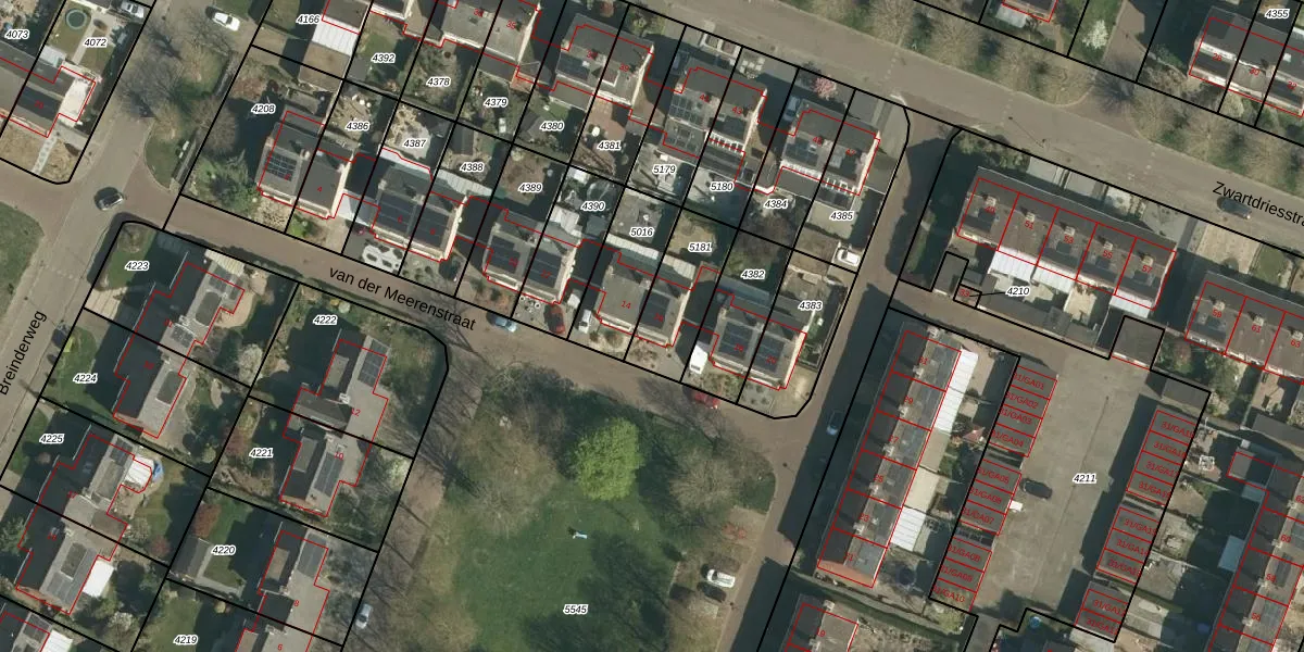 Gebruik de zoekbalk of klik op een perceel voor informatie over de adressen binnen dit perceel.