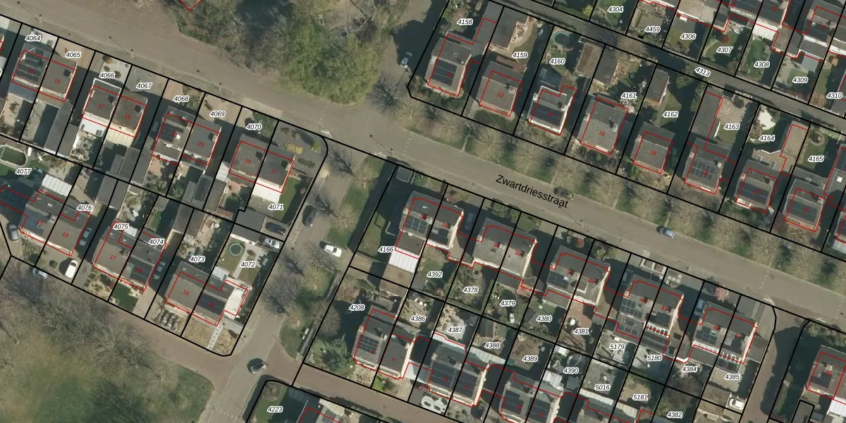 Gebruik de zoekbalk of klik op een perceel voor informatie over de adressen binnen dit perceel.