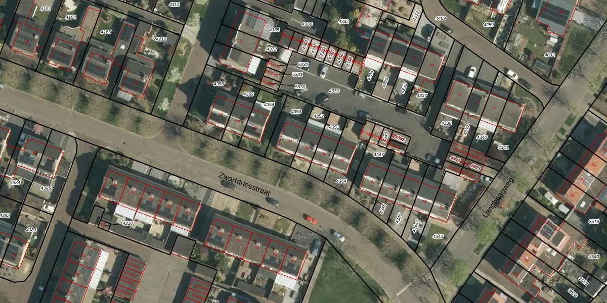 Gebruik de zoekbalk of klik op een perceel voor informatie over de adressen binnen dit perceel.