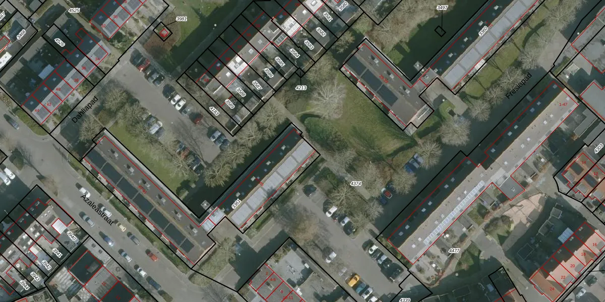Dahliapad 65 is gelegen op kadastraal perceel SLD01B3361. Deze kadastrale aanduiding is uniek en wordt gebruikt door het Kadaster om eigendomsrechten en andere zakelijke rechten vast te leggen. Het perceel maakt onderdeel uit van de kadastrale gemeente Stellendam.