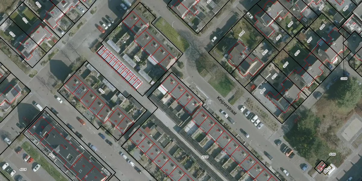 Het perceel waarop Keijzerstraat 29 staat heeft een oppervlakte van 4428 m². Dit is een zeer groot perceel. De perceeloppervlakte wordt geregistreerd door het Kadaster. Gedetailleerde informatie over de maten van dit perceel kunt u vinden in het rapport Kadastrale kaart met maatvoering van Keijzerstraat 29.