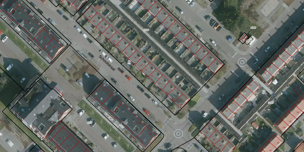 Het perceel waarop Schoolstraat 42 staat heeft een oppervlakte van 4428 m². Dit is een zeer groot perceel. De perceeloppervlakte wordt geregistreerd door het Kadaster. Gedetailleerde informatie over de maten van dit perceel kunt u vinden in het rapport Kadastrale kaart met maatvoering van Schoolstraat 42.