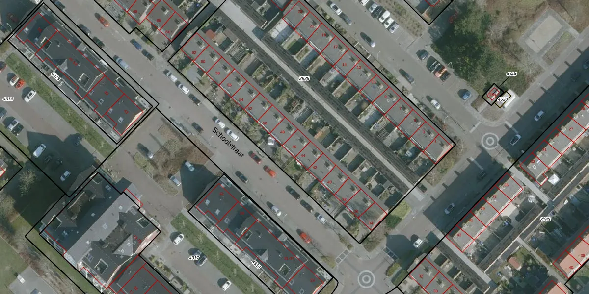 Het perceel waarop Schoolstraat 46 staat heeft een oppervlakte van 4428 m². Dit is een zeer groot perceel. De perceeloppervlakte wordt geregistreerd door het Kadaster. Gedetailleerde informatie over de maten van dit perceel kunt u vinden in het rapport Kadastrale kaart met maatvoering van Schoolstraat 46.