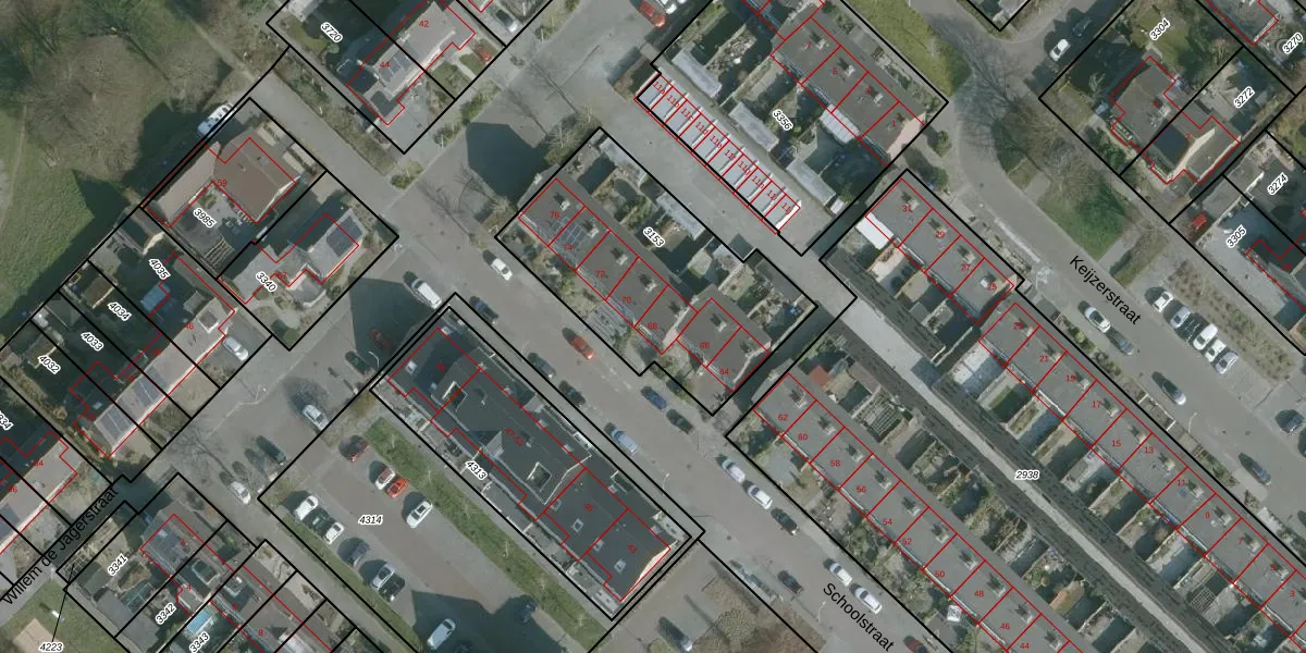Het perceel waarop Schoolstraat 68 staat heeft een oppervlakte van 1008 m². Dit is een zeer groot perceel. De perceeloppervlakte wordt geregistreerd door het Kadaster. Gedetailleerde informatie over de maten van dit perceel kunt u vinden in het rapport Kadastrale kaart met maatvoering van Schoolstraat 68.