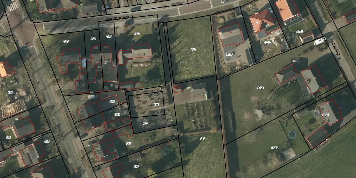 Averbodeweg 5-b is gelegen op kadastraal perceel HZE00H863. Deze kadastrale aanduiding is uniek en wordt gebruikt door het Kadaster om eigendomsrechten en andere zakelijke rechten vast te leggen. Het perceel maakt onderdeel uit van de kadastrale gemeente Heeze.