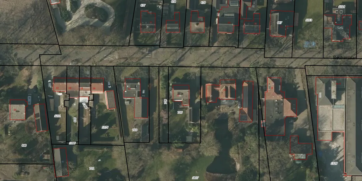 Beukenlaan 12 is gelegen op kadastraal perceel HZE00H705. Deze kadastrale aanduiding is uniek en wordt gebruikt door het Kadaster om eigendomsrechten en andere zakelijke rechten vast te leggen. Het perceel maakt onderdeel uit van de kadastrale gemeente Heeze.
