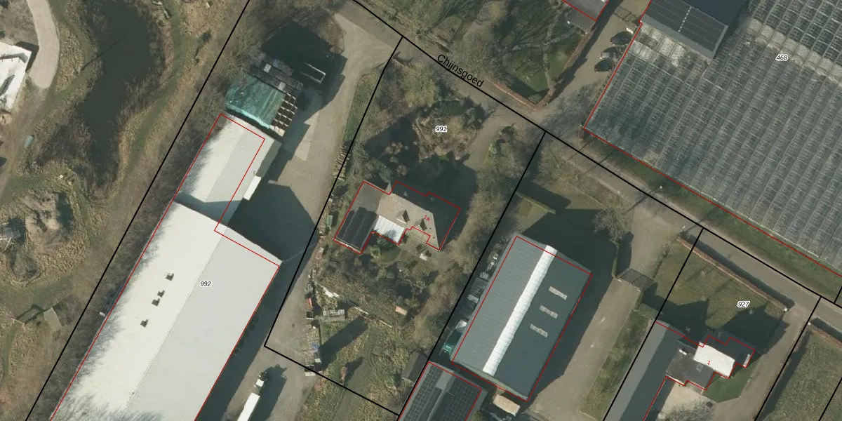 Het perceel waarop Chijnsgoed 1-a staat heeft een oppervlakte van 3110 m². Dit is een zeer groot perceel. De perceeloppervlakte wordt geregistreerd door het Kadaster. Gedetailleerde informatie over de maten van dit perceel kunt u vinden in het rapport Kadastrale kaart met maatvoering van Chijnsgoed 1-a.