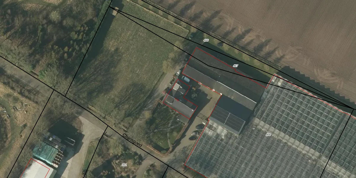 Het perceel waarop Chijnsgoed 2-b staat heeft een oppervlakte van 1,0 ha. Dit is een zeer groot perceel. De perceeloppervlakte wordt geregistreerd door het Kadaster. Gedetailleerde informatie over de maten van dit perceel kunt u vinden in het rapport Kadastrale kaart met maatvoering van Chijnsgoed 2-b.