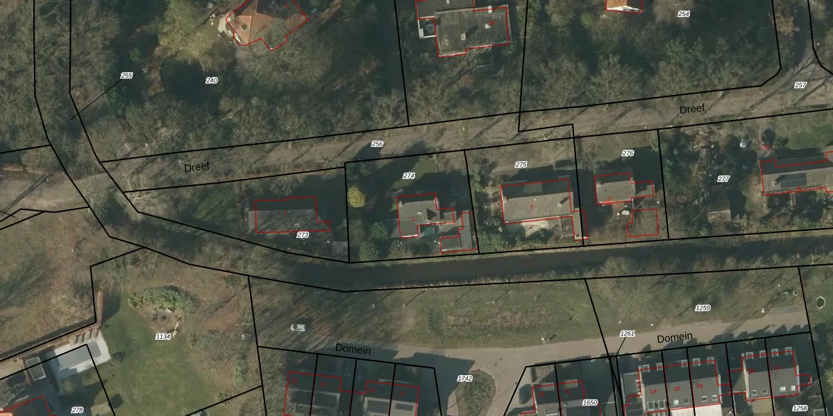 Het perceel waarop Dreef 3 staat heeft een oppervlakte van 730 m². Dit is een groot perceel. De perceeloppervlakte wordt geregistreerd door het Kadaster. Gedetailleerde informatie over de maten van dit perceel kunt u vinden in het rapport Kadastrale kaart met maatvoering van Dreef 3.