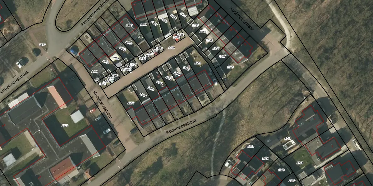 Koolmeesstraat 15 is gelegen op kadastraal perceel HZE00H1554. Deze kadastrale aanduiding is uniek en wordt gebruikt door het Kadaster om eigendomsrechten en andere zakelijke rechten vast te leggen. Het perceel maakt onderdeel uit van de kadastrale gemeente Heeze.