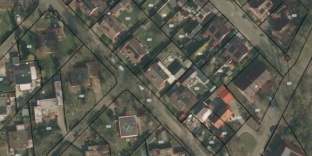 Het perceel waarop Cerespark 21 staat heeft een oppervlakte van 672 m². Dit is een groot perceel. De perceeloppervlakte wordt geregistreerd door het Kadaster. Gedetailleerde informatie over de maten van dit perceel kunt u vinden in het rapport Kadastrale kaart met maatvoering van Cerespark 21.