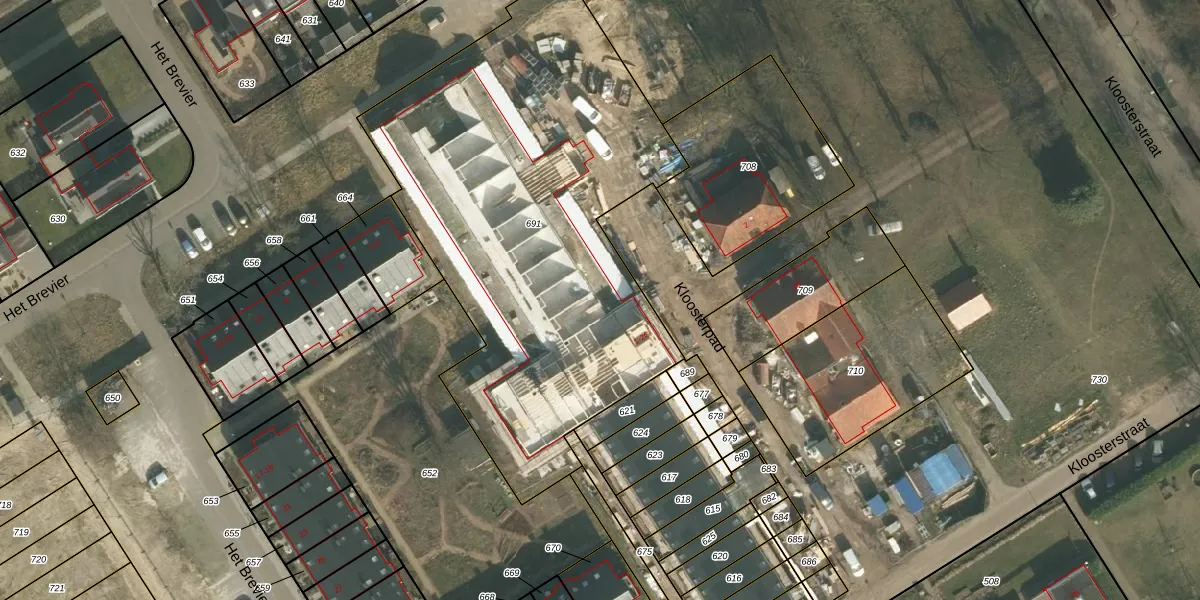 Kloosterpad 25 is gelegen op kadastraal perceel OLO00E691. Deze kadastrale aanduiding is uniek en wordt gebruikt door het Kadaster om eigendomsrechten en andere zakelijke rechten vast te leggen. Het perceel maakt onderdeel uit van de kadastrale gemeente Oploo.
