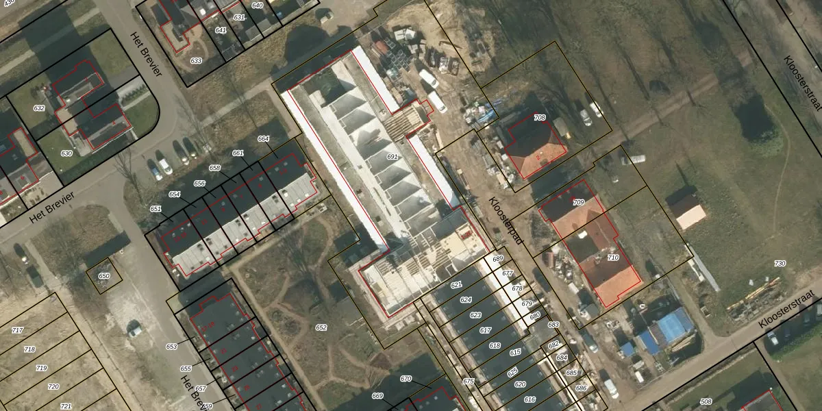 Kloosterpad 65 is gelegen op kadastraal perceel OLO00E691. Deze kadastrale aanduiding is uniek en wordt gebruikt door het Kadaster om eigendomsrechten en andere zakelijke rechten vast te leggen. Het perceel maakt onderdeel uit van de kadastrale gemeente Oploo.