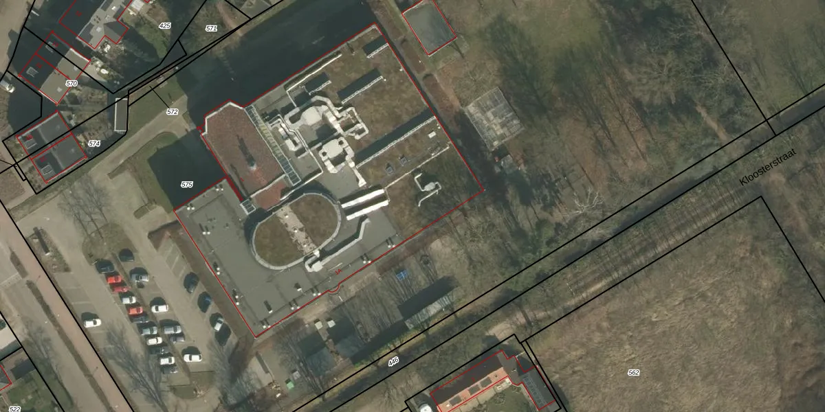 Het perceel waarop Kloosterstraat 1-A staat heeft een oppervlakte van 1,4 ha. Dit is een zeer groot perceel. De perceeloppervlakte wordt geregistreerd door het Kadaster. Gedetailleerde informatie over de maten van dit perceel kunt u vinden in het rapport Kadastrale kaart met maatvoering van Kloosterstraat 1-A.