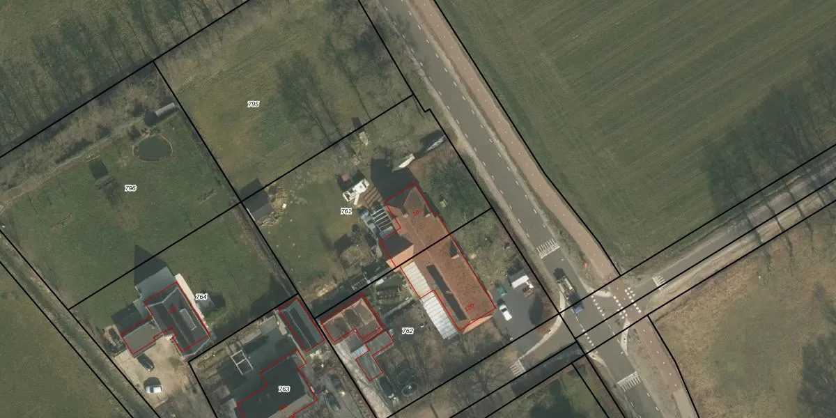 Kloosterstraat 20 is gelegen op kadastraal perceel OLO00M761. Deze kadastrale aanduiding is uniek en wordt gebruikt door het Kadaster om eigendomsrechten en andere zakelijke rechten vast te leggen. Het perceel maakt onderdeel uit van de kadastrale gemeente Oploo.