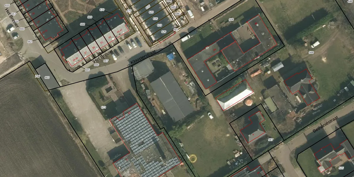 Kloosterstraat 4-E is gelegen op kadastraal perceel OLO00E568. Deze kadastrale aanduiding is uniek en wordt gebruikt door het Kadaster om eigendomsrechten en andere zakelijke rechten vast te leggen. Het perceel maakt onderdeel uit van de kadastrale gemeente Oploo.