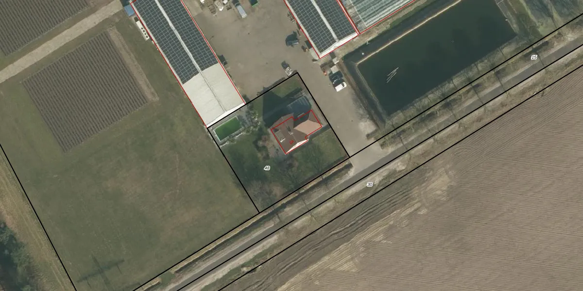 Het adres ligt op het perceel OLO00-H-48, dat zich in de kadastrale gemeente Oploo bevindt. Het perceel is 1245 m² groot. Dat is kleiner dan de gemiddelde perceeloppervlakte in Oploo, dat op 9279,09 m² ligt. De grootste perceeloppervlakte in de kadastrale gemeente is 5,11 km². De kleinste oppervlakte bedraagt 0 m². Er zijn geen andere adressen aanwezig op het perceel. De laatste wijziging in het de Basisregistratie Kadaster (BRK) was op 15-03-2019.