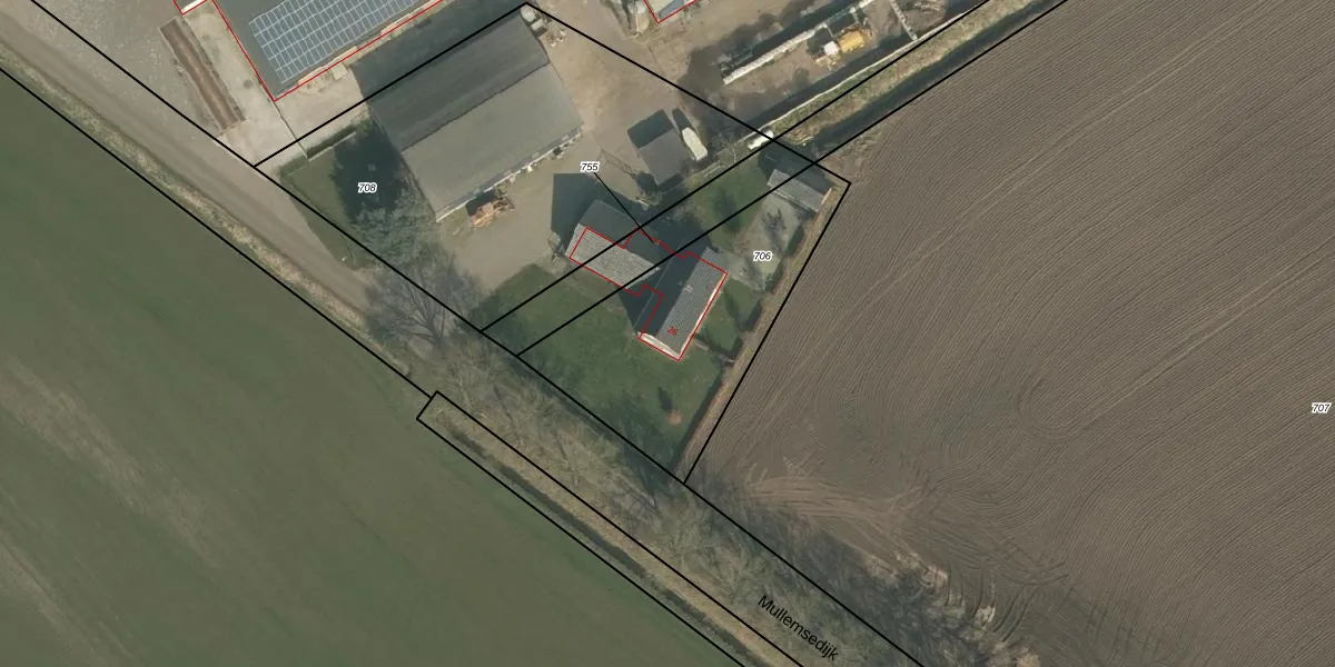 Mullemsedijk 26 is gelegen op kadastraal perceel OLO00M706. Deze kadastrale aanduiding is uniek en wordt gebruikt door het Kadaster om eigendomsrechten en andere zakelijke rechten vast te leggen. Het perceel maakt onderdeel uit van de kadastrale gemeente Oploo.