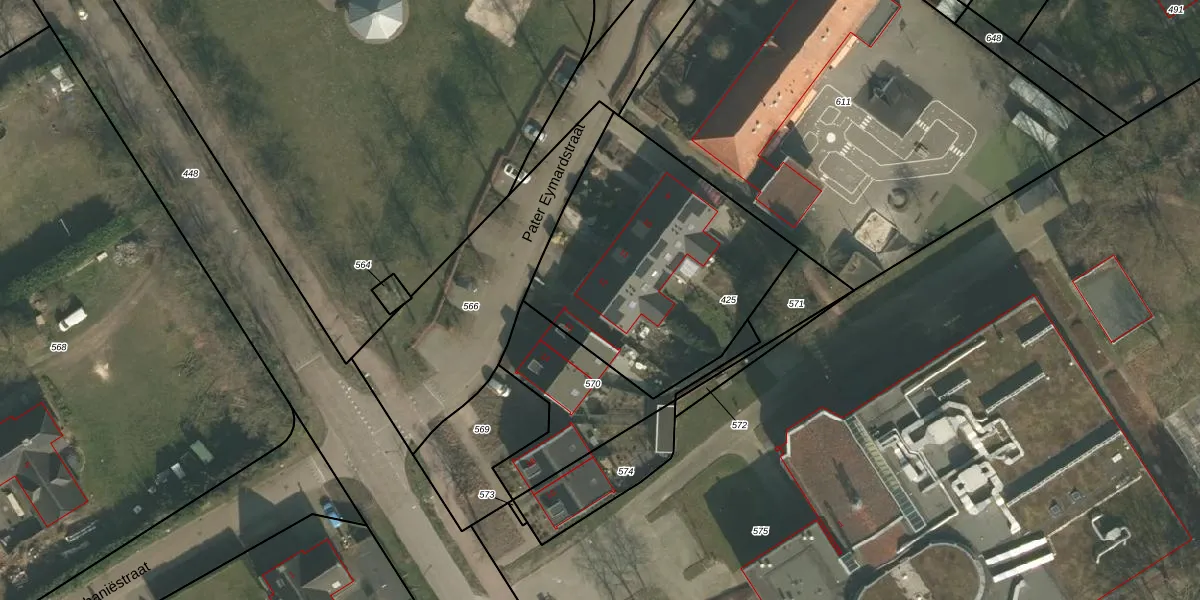 Pater Eymardstraat 12 is gelegen op kadastraal perceel OLO00E425. Deze kadastrale aanduiding is uniek en wordt gebruikt door het Kadaster om eigendomsrechten en andere zakelijke rechten vast te leggen. Het perceel maakt onderdeel uit van de kadastrale gemeente Oploo.