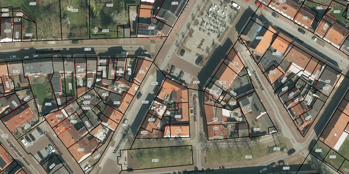 Het perceel waarop Markt 4-a staat heeft een oppervlakte van 184 m². Dit is een middelgroot perceel. De perceeloppervlakte wordt geregistreerd door het Kadaster. Gedetailleerde informatie over de maten van dit perceel kunt u vinden in het rapport Kadastrale kaart met maatvoering van Markt 4-a.