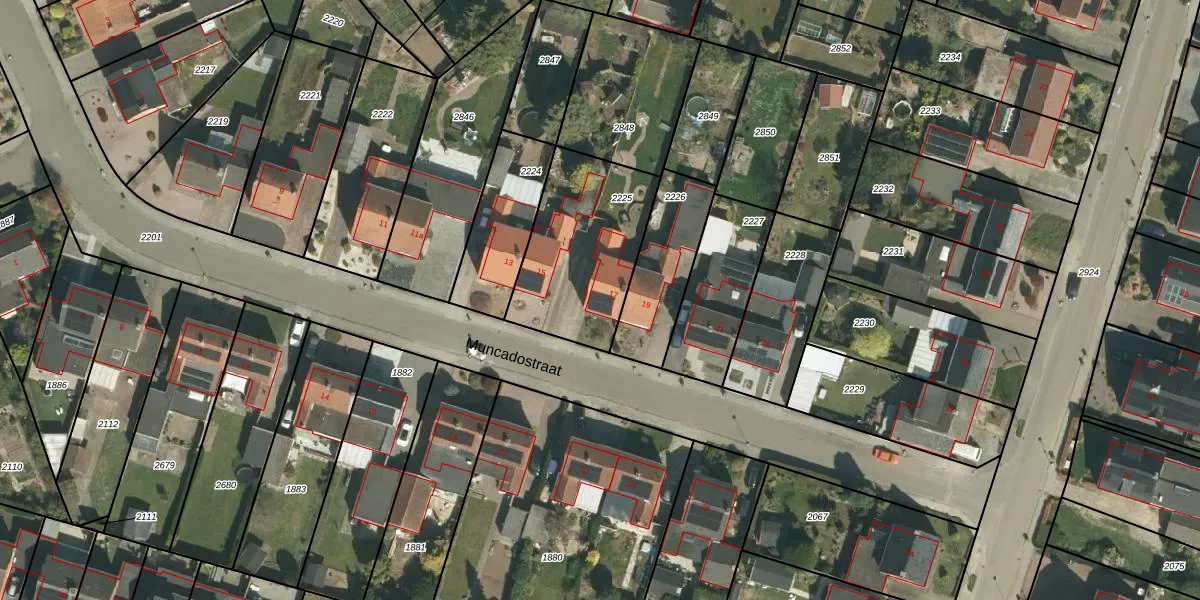 Het perceel waarop Muncadostraat 17 staat heeft een oppervlakte van 556 m². Dit is een groot perceel. De perceeloppervlakte wordt geregistreerd door het Kadaster. Gedetailleerde informatie over de maten van dit perceel kunt u vinden in het rapport Kadastrale kaart met maatvoering van Muncadostraat 17.