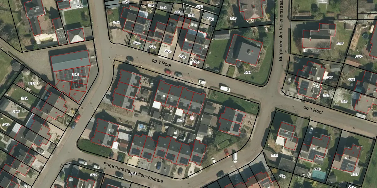 Het perceel waarop op 't Root 9 staat heeft een oppervlakte van 3775 m². Dit is een zeer groot perceel. De perceeloppervlakte wordt geregistreerd door het Kadaster. Gedetailleerde informatie over de maten van dit perceel kunt u vinden in het rapport Kadastrale kaart met maatvoering van op 't Root 9.
