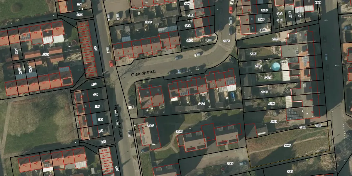 Gieterijstraat 10 is gelegen op kadastraal perceel TGL00D2294. Deze kadastrale aanduiding is uniek en wordt gebruikt door het Kadaster om eigendomsrechten en andere zakelijke rechten vast te leggen. Het perceel maakt onderdeel uit van de kadastrale gemeente Tegelen.