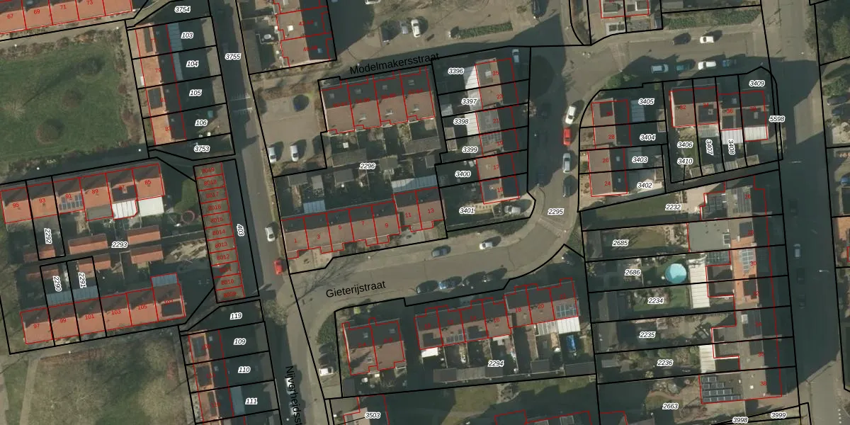 Het perceel waarop Gieterijstraat 13 staat heeft een oppervlakte van 1385 m². Dit is een zeer groot perceel. De perceeloppervlakte wordt geregistreerd door het Kadaster. Gedetailleerde informatie over de maten van dit perceel kunt u vinden in het rapport Kadastrale kaart met maatvoering van Gieterijstraat 13.