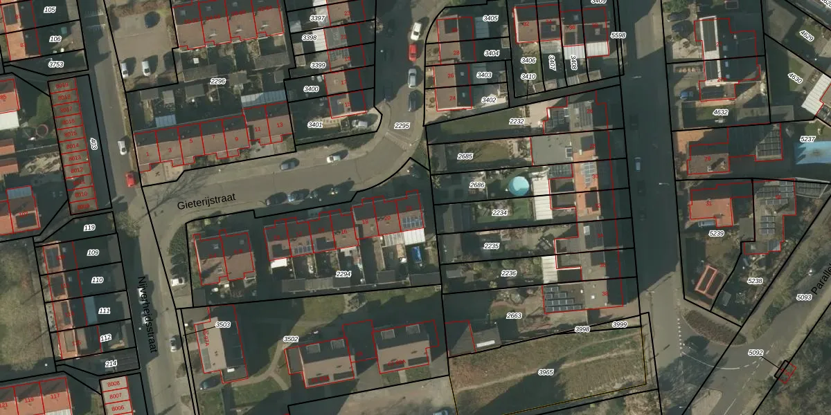 Gieterijstraat 22 is gelegen op kadastraal perceel TGL00D2294. Deze kadastrale aanduiding is uniek en wordt gebruikt door het Kadaster om eigendomsrechten en andere zakelijke rechten vast te leggen. Het perceel maakt onderdeel uit van de kadastrale gemeente Tegelen.