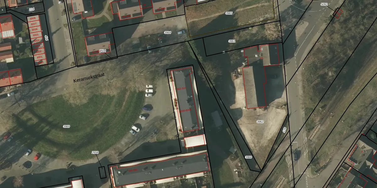 Keramiekstraat 306 is gelegen op kadastraal perceel TGL00D2603. Deze kadastrale aanduiding is uniek en wordt gebruikt door het Kadaster om eigendomsrechten en andere zakelijke rechten vast te leggen. Het perceel maakt onderdeel uit van de kadastrale gemeente Tegelen.